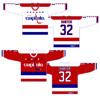 | Notes - For the 1995-96 and 1996-97 seasons, the word "CAPITALS" appears below the eagle on both the home and road jerseys. | |